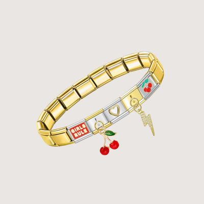 התחילו עם צמיד חלק והוסיפו כמה צ׳ארמים, תוך התאמת המידה על ידי הסרת חוליות.