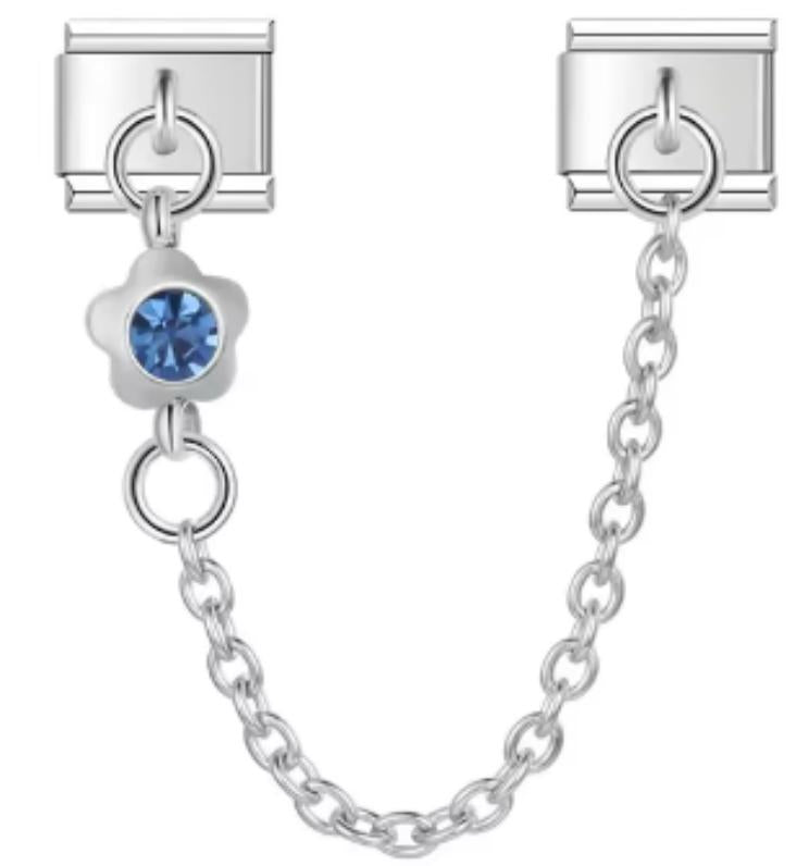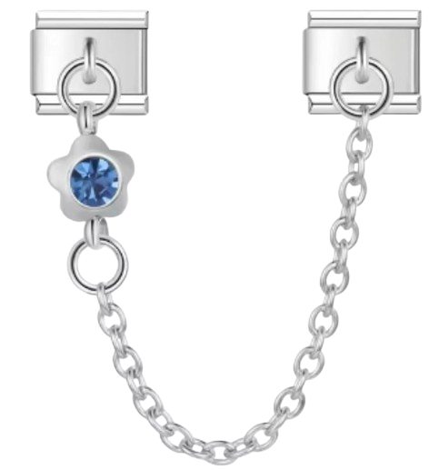 צ׳ארם שרשרת כסופה עם פרח קריסטל כחול המסמל יופי ושלווה.