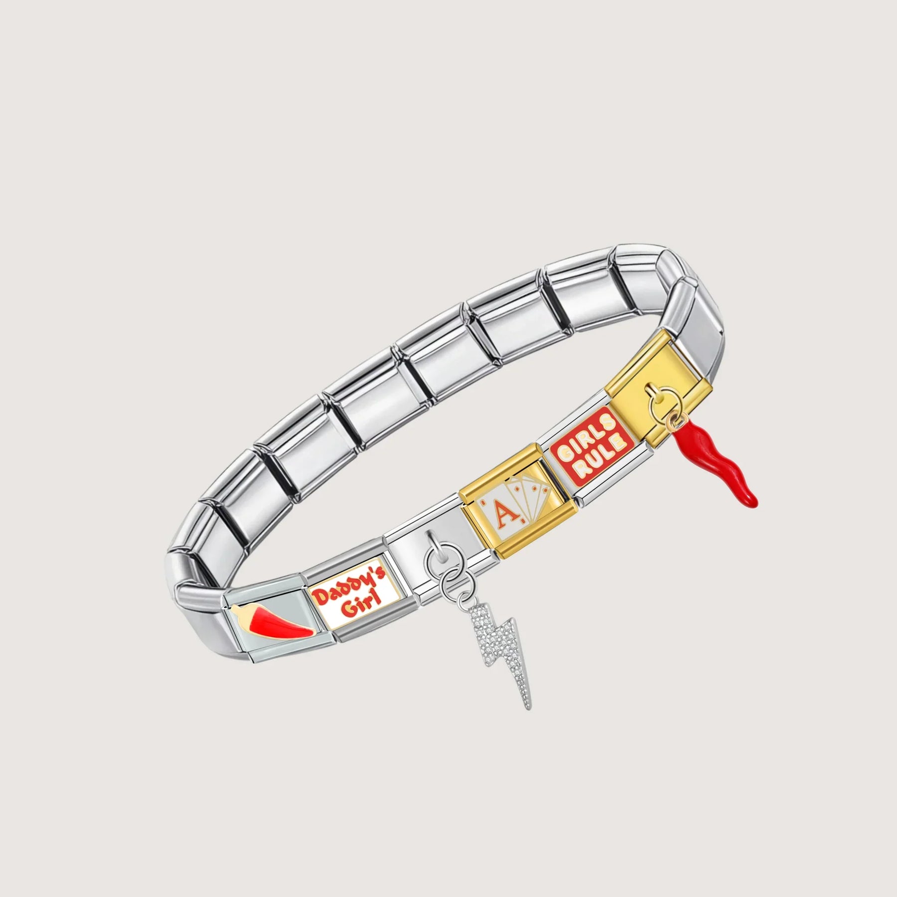 התחילו עם צמיד חלק והוסיפו כמה צ׳ארמים, תוך התאמת המידה על ידי הסרת חוליות.
