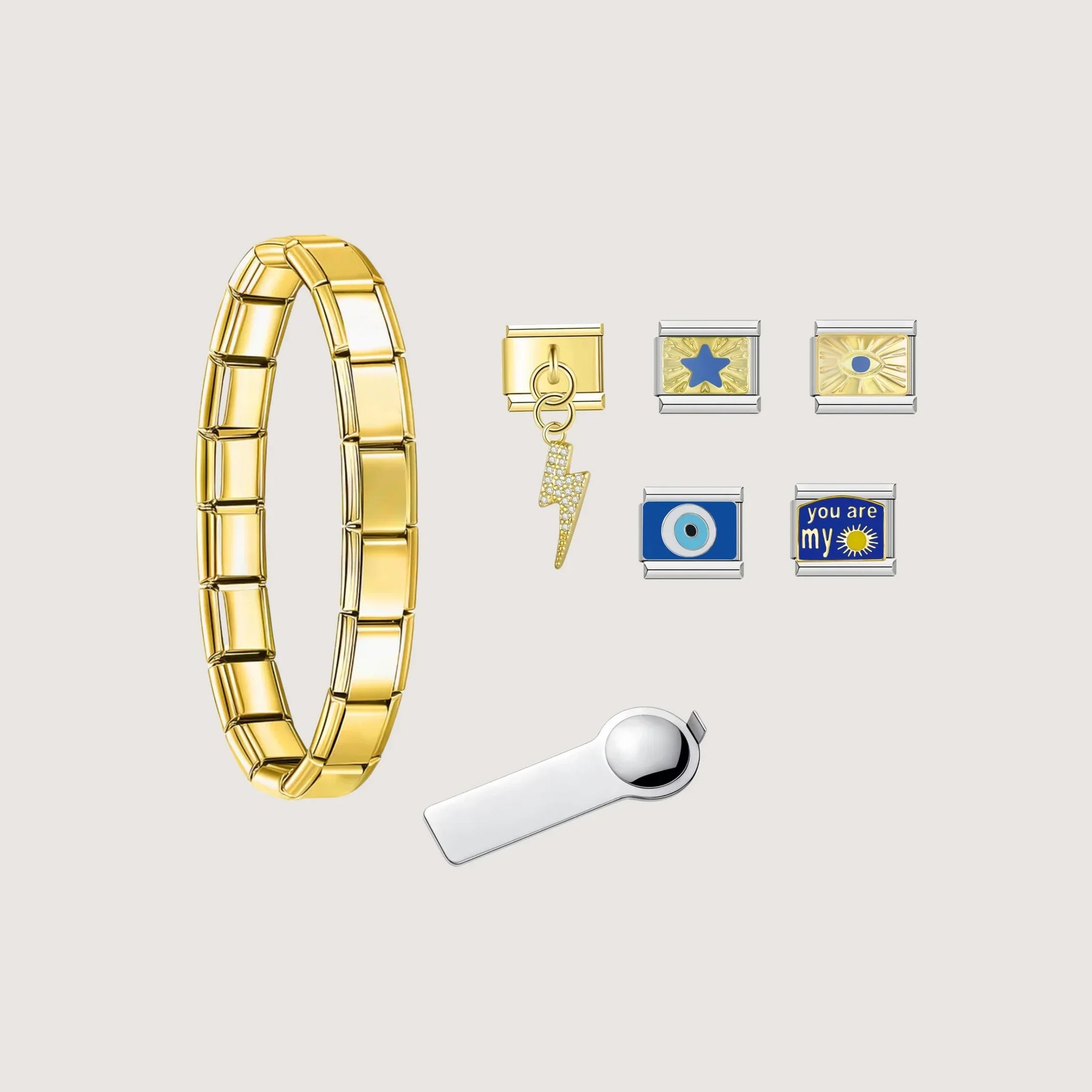 התחילו עם צמיד חלק והוסיפו כמה צ׳ארמים, תוך התאמת המידה על ידי הסרת חוליות.